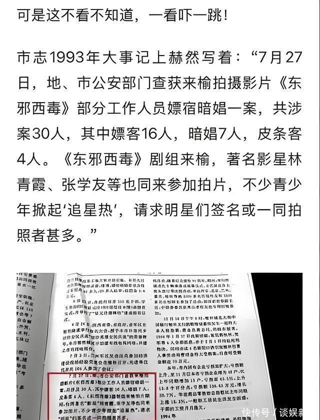 甚至有网友扒出1993年《东邪西毒》剧组16人嫖娼被抓事件虽与主演无关,但王家卫模糊回应被指包庇,跟秦雯袭警如出一辙。